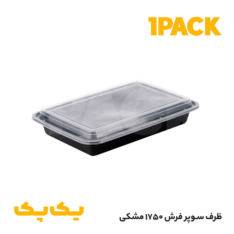 ظرف کیترینگی ماکروویوی سوپرفرش 1750 طب پلاست (بدنه شفاف و مشکی) با درب شفاف