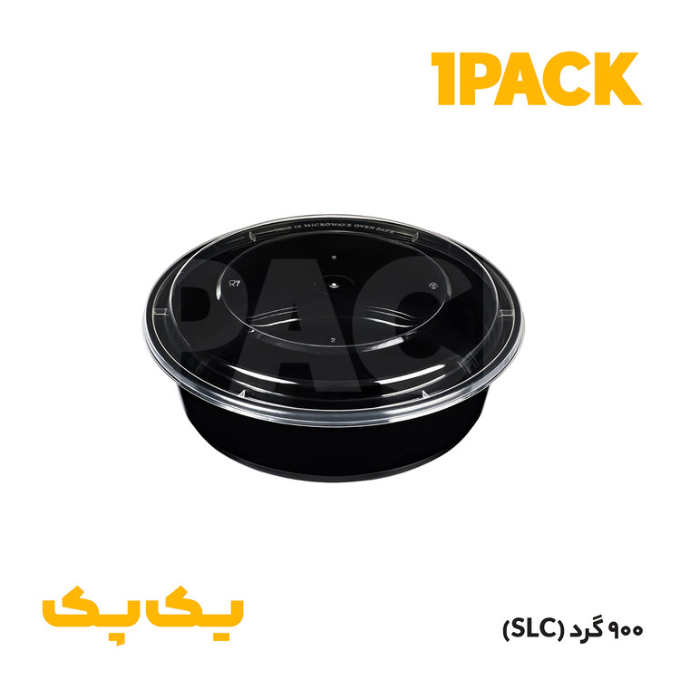 ظرف ماکروویوی گرد مشکی هات دلیوری 900 با درب شفاف طب پلاستیک