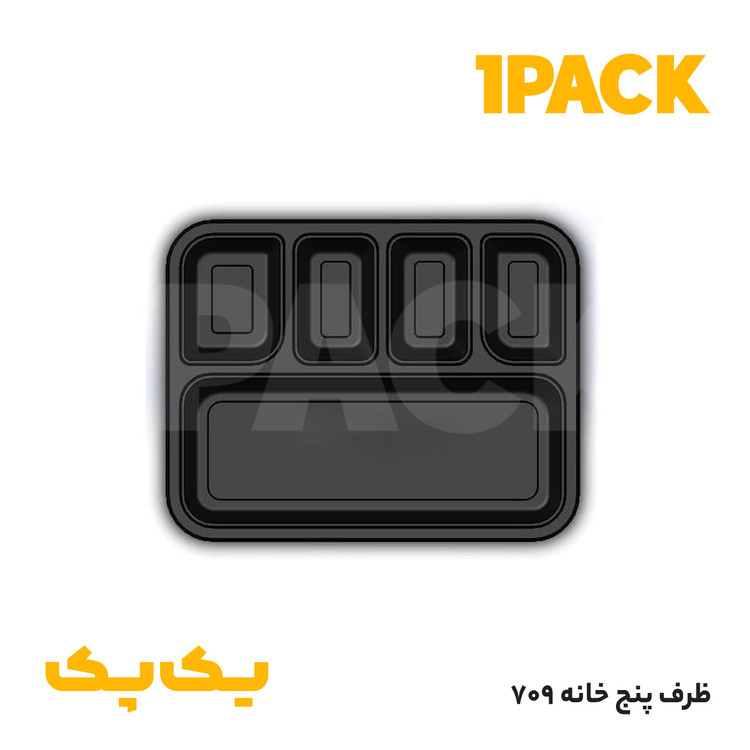 - ظرف پنج خانه ماکروفری مشکی 709 مناسب انواع گبابی و چلوکباب ،غذاهای فرنگی انواع غذا با دورچین و ... می باشد
