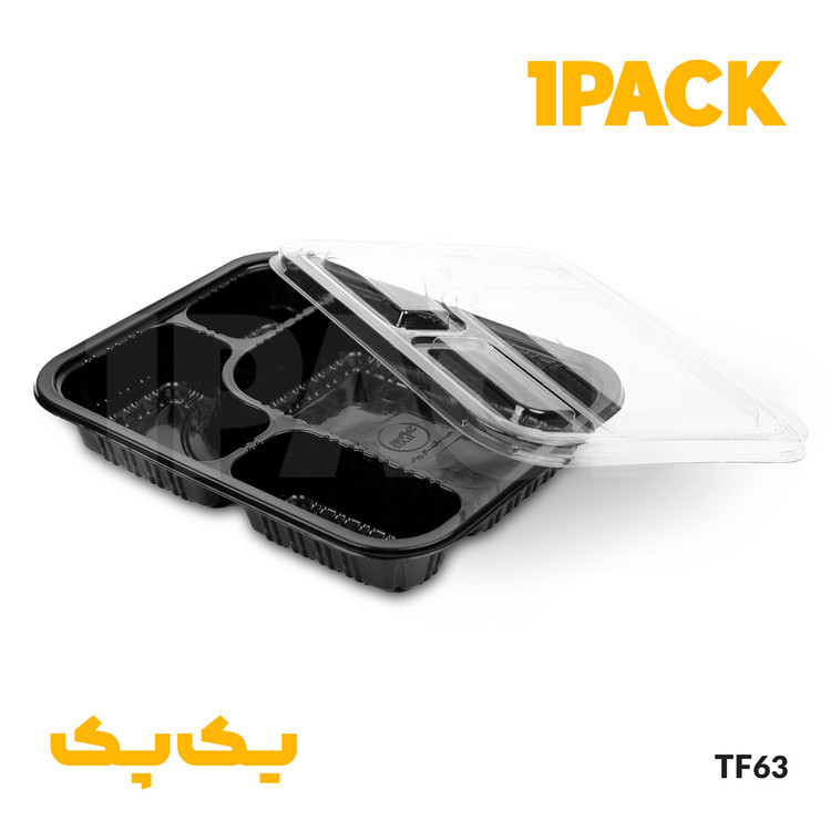 ظرف مشکی ماکروویوی 4خانه همراه درب، گزینه مناسبی جهت سرو و نگهداری انواع مواد غذایی سرد و گرم برای رستوران ها و کیترینگ ها میباشد.