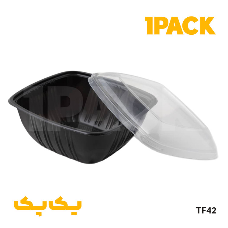 ظرف ماکروفری چهار گوش مشکی همراه درب، گزینه مناسبی جهت سرو و نگهداری انواع مواد غذایی سرد و گرم برای رستوران ها و کیترینگ ها میباشد.ظرف 42 (M600) مناسب سرو انواع سالاد ، پاستا و انواع آش و سوپ می باشد.