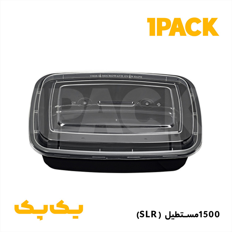 ظرف ماکروویوی هات دلیوری 1500 مستطیل مشکی و شفاف با درب شفاف