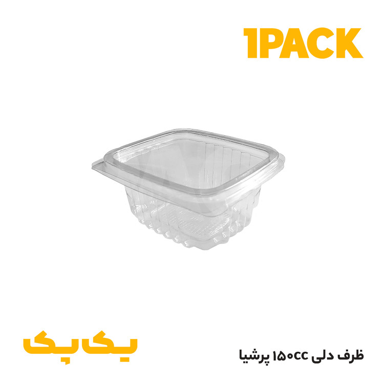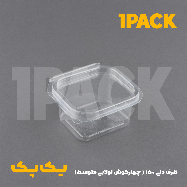ظرف یکبار مصرف pet چهارگوش دلی 150 سبک با درب لولایی